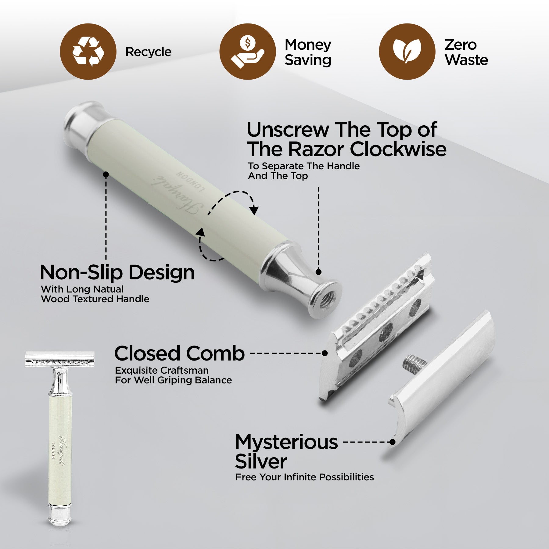 Haryali's Round Safety Razor - Ivory
